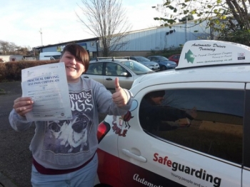Congratulations to Joanna who passed her Automatic Driving Test at Norwich MPTC this morning.