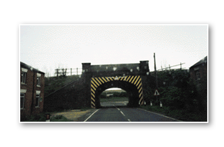 The highest point of the bridge is in the centre, so a large vehicle might have to move to the centre of the road to have enough room to pass under the bridge.