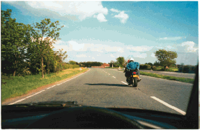Q #608 - You've just been overtaken by this motorcyclist, who has cut in sharply. What should you do?
