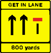 Q #720 - You're driving in the right-hand lane of a dual carriageway. You see signs showing that the right-hand lane is closed 800 yards ahead. What should you do?